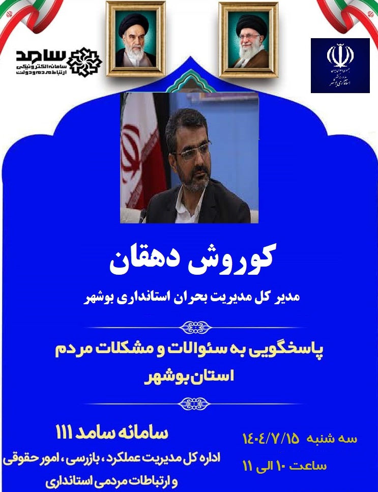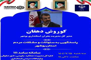 در همین راستا مورخ 1404/7/15 از ساعت 10 تا 11 مدیرکل مدیریت بحران استانداری بوشهر در مرکز سامد حضور یافته و مستقیما به تماسها پاسخ گفتند.