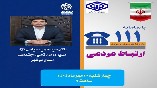 در همین راستا مورخ 1404/7/30از ساعت 9 تا 10 مدیر درمان تامین اجتماعی استان بوشهر  در مرکز سامد حضور یافته و مستقیما به تماسها پاسخ گفتند.