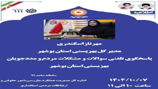 در همین راستا مورخ 1404/10/7از ساعت 10 تا 11 مدیرکل بهزیستی استان در مرکز سامد بوشهر حضور یافته و مستقیما به تماسها پاسخ گفتند.