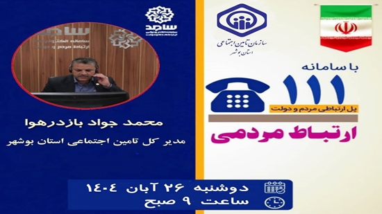 در همین راستا مورخ 1404/8/26از ساعت 9 تا 10 مدیرکل تامین اجتماعی در مرکز سامد حضور یافته و مستقیما به تماسها پاسخ گفتند.